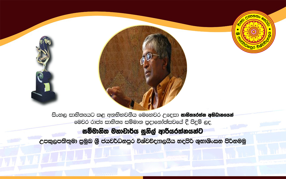 Emeritus Prof. Sunil Ariyaratne, recipient of the Vishwa Prasadini, Vidyodaya Vibhushana, Sahitya Kala Shiromani, Thamilmani and Thamilmamani honorary titles, has been awarded the title “Sahithyadarathna” at the 2021 State Literary Awards Ceremony for his invaluable contribution to Sinhala literature. Emeritus Prof. Sunil Ariyaratne graduated with honors from the University of Sri Jayewardenepura in 1971 with...Read More