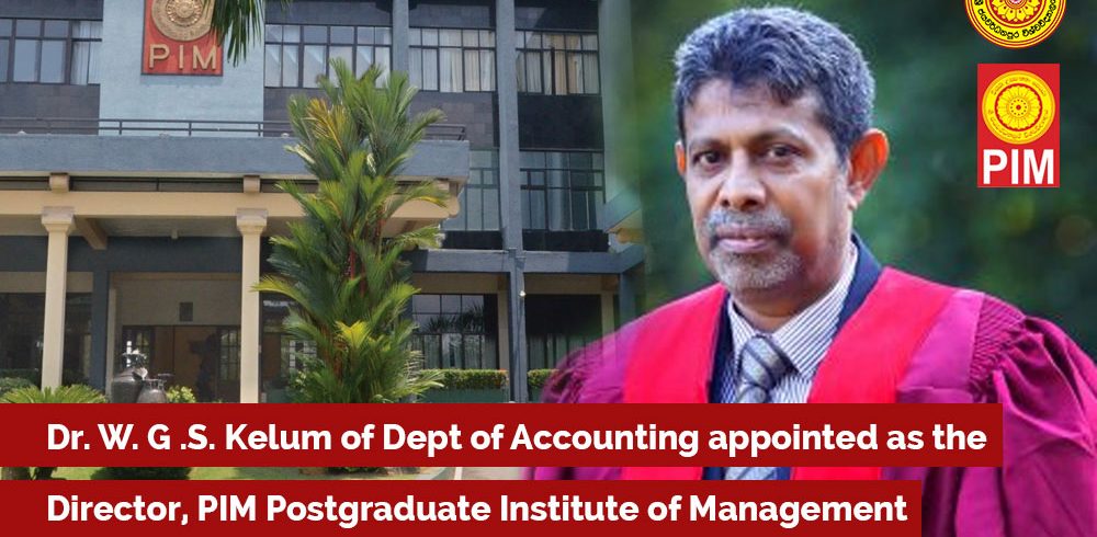 Dr. W. G. S. Kelum, Deptartment of Accounting, Faculty of Management Studies & Commerce, USJ appointed as the new Director of Postgraduate Institute of Management (PIM) with effect from 8th of May 2021 by the University Grants Commission. Dr. W. G. S. Kelum completed his education...Read More