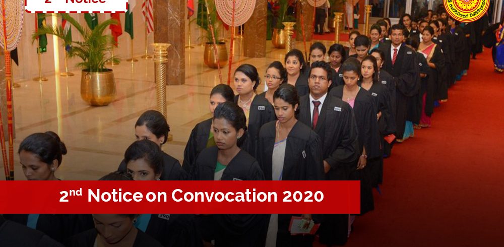 Convocation – November 2020 2nd Announcement on 28/10/2020 The following decisions were arrived at the special Convocation Committee meeting held on the 27.10.2020. The University will take necessary measures to make the official dates of degrees conferred as 2nd and 3rdNovember 2020 for internal...Read More