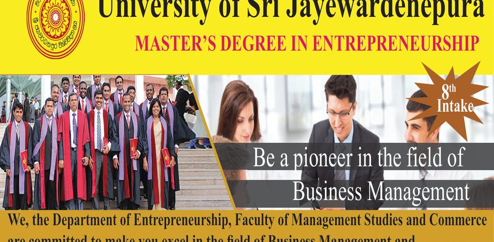 Applications are now calling for the Master’s Degree in Entrepreneurship offered by the Faculty of Graduate Studies of the University of Sri Jayewardenepura. Closing Date: 15th of September 2020 For Online Application Visit: http://graduate.sjp.ac.lkRead More