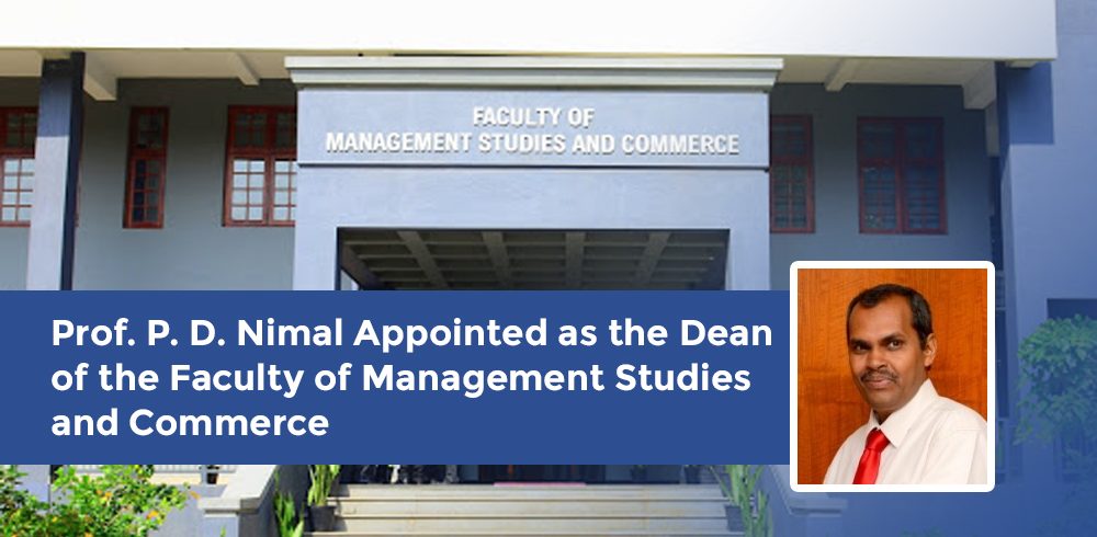 Prof. P.D. Nimal Head of the Department of Finance has been appointed as the Dean of the Faculty of Management Studies and Commerce at the Faculty Board Meeting of the respective faculty held today (27 May 2020) with the chairmanship of Prof. Sudantha Liyanage, Acting Vice...Read More