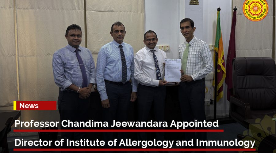 The University of Sri Jayewardenepura is pleased to announce the appointment of Professor Chandima Jeewandara as Director of the Institute of Allergology and Immunology (IAI), with effect from 1 January 2026. The formal appointment ceremony was held at the University Grants Commission in the presence of the Chairman, Senior Prof. Kapila Senevirathne, together with the Vice-Chancellor, Senior Prof. Pathmalal M. Manage, and the Registrar, Mr. A. B. Weliwita. Following this, he officially assumed duties...Read More