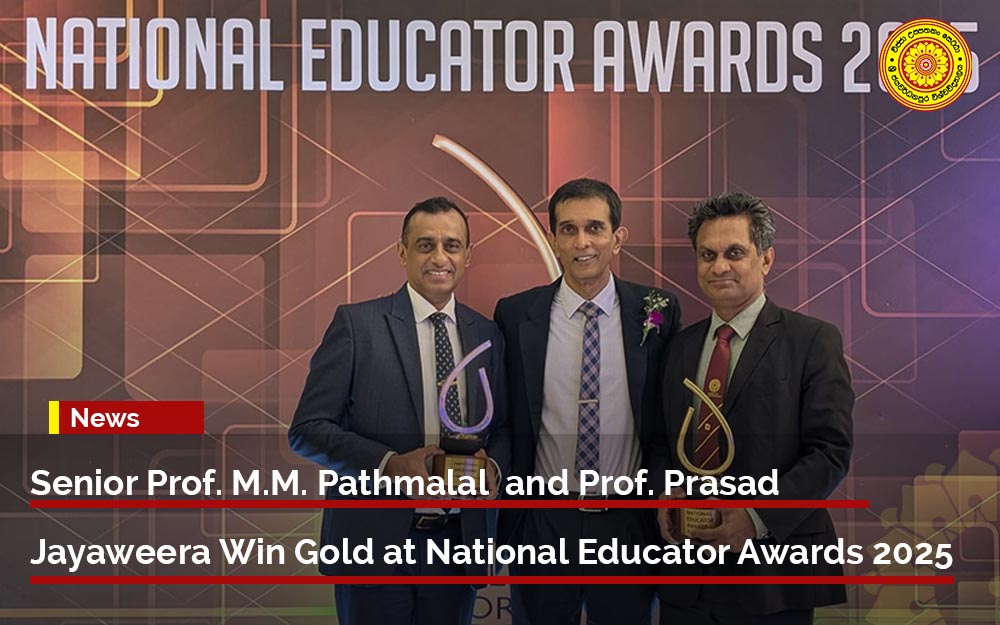 Heartfelt congratulations to Vice Chancellor Senior Prof. M.M. Pathmalal, who received the Gold Award in the Applied Sciences category at the National Educator Awards (NEA) 2025 a remarkable recognition of his outstanding leadership, scholarship, and dedication to advancing science and higher education in Sri Lanka.